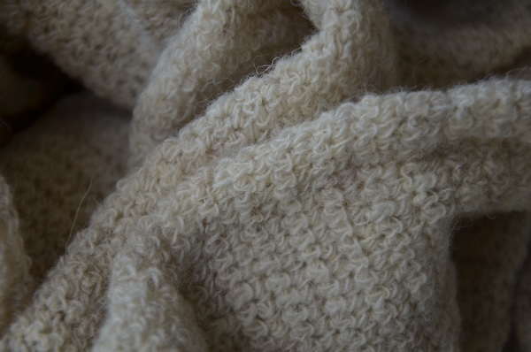 毛足が長く陰影が生まれやすいニットだと、明るい色もまた多様。