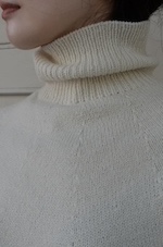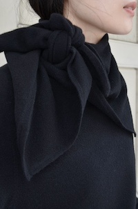 high neck:ぱっと見た印象以上に細い糸を用いていることで、実施に袖を通すとその軽やかさにびっくりするハイネックセーター。カシミアウールによる着心地の柔らかさもたまりません。¥187,000(HIROMI TSUYOSHI)
