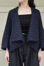navy: 編み地に目を奪われるボレロのような変形カーディガン。動きがありながらもblack x navyの配色で利便性が高いのも嬉しい。¥214,500(HIROMI TSUYOSHI)