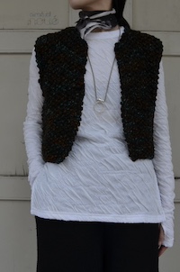black short:アルゼンチンのハンドニットベスト。コンパクトなサイジングのバランスが可愛い♡厚みが無くレイヤードがしやすいので、一枚あるととても便利です。¥49,500(SEEALL)