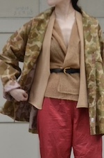 camel:前身頃が二重のレイヤードデザインになったカーディガンは着るだけで魅力を感じられる力の強い一枚。色違いでnavy / blackも。¥179,300(HIROMI TSUYOSHI)