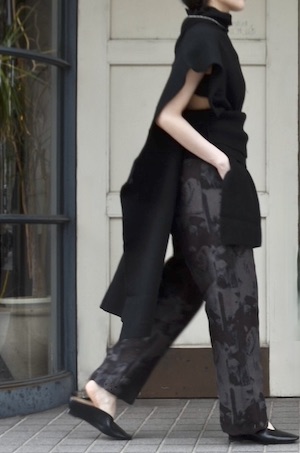 sheer top¥33,000 / gillet¥71,500 / pants¥31,900 (SEEALL)