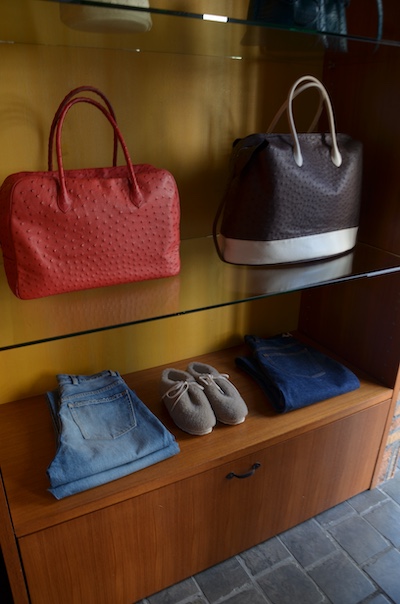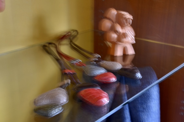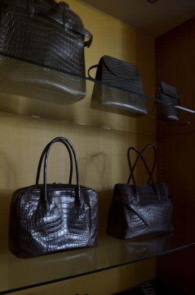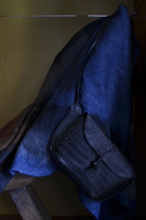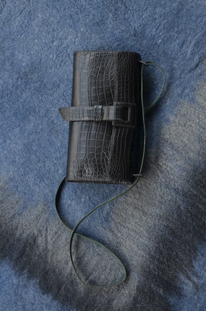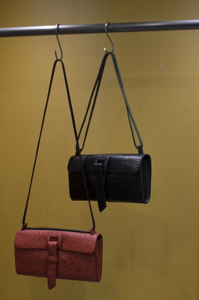 おふたりが在店くださっていた週末は、ミシンを使わない全て手作業での縫製のお話や、クロコの柄=腑(ふ)の使い方に対するロロさんの美意識など製作背景のお話で終始盛り上がった店内。