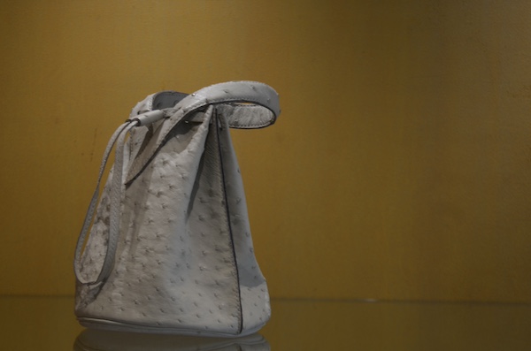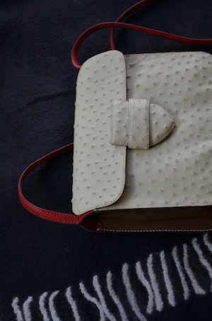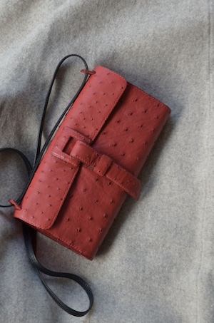 ACCALMIEのオーストリッチは本当にチャーミング。ロロさんは巾着型のタイプを自転車のハンドルに引っ掛けて持ち歩いているそう。