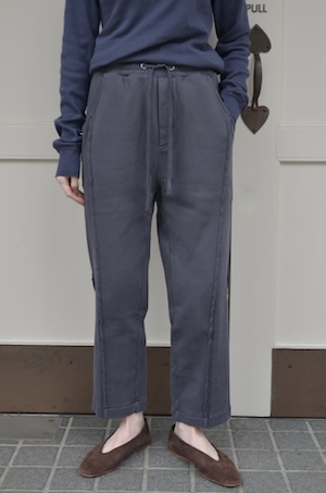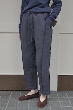 上質なコットン裏起毛生地を使用したスウェット素材のパンツ。