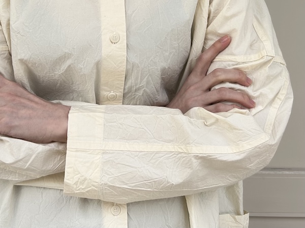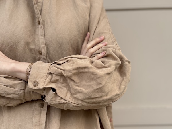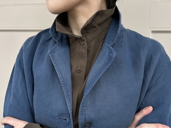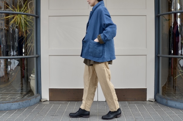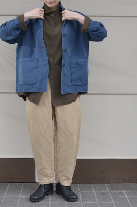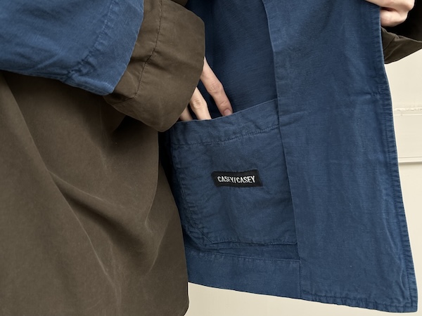 シルエットはコンパクトながらもとろみのある生地なのでセットインでも着やすく、数年着たような風合いがCASEYCASEYらしい。