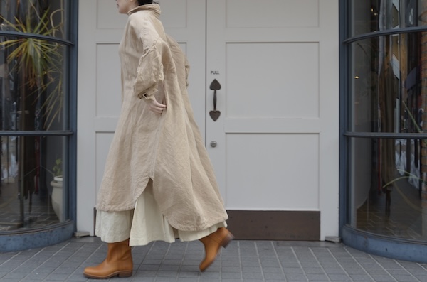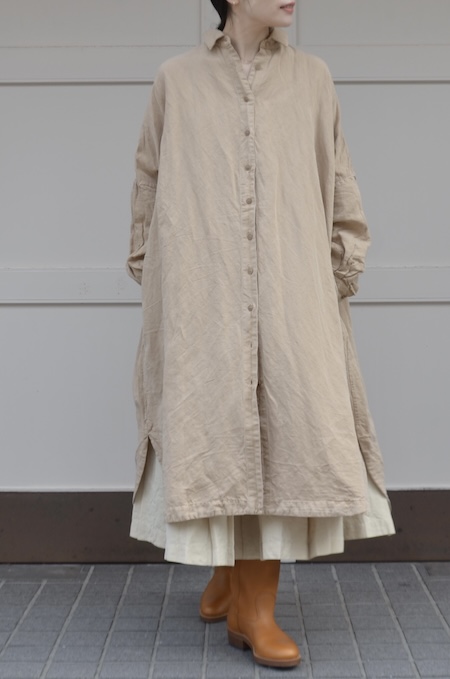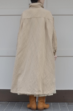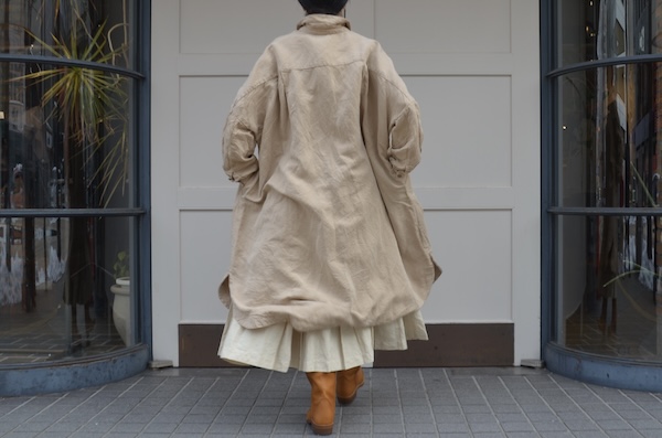 洗いのかかった風合いとロング丈でも軽さのある生地なので着やすいのが特徴。