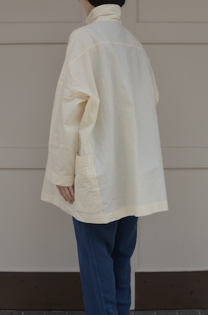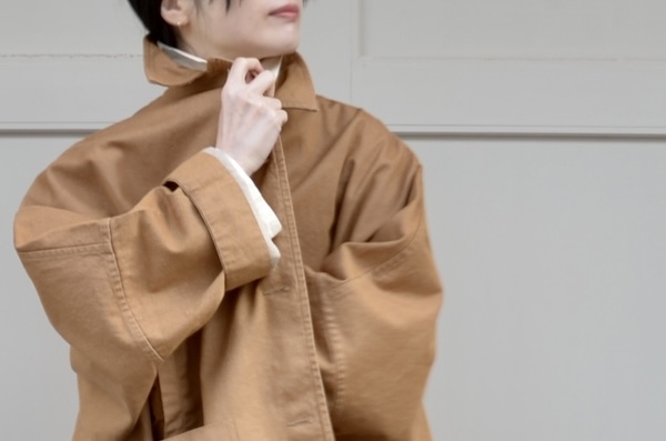 薄手の生地ですがハリがあるのでジャケット感覚でも着ていただけるデザインです。