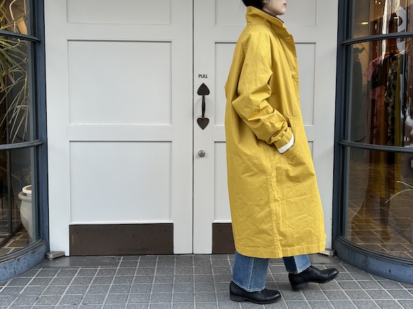 見た瞬間かわいい!と目を引いたイエローのコート。