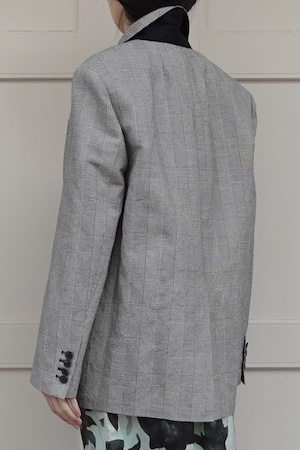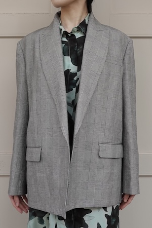 ROUND COTTON LINEN TAILORED JACKET ¥143,000 / CHECK / size1 / cotton45%,linen55%