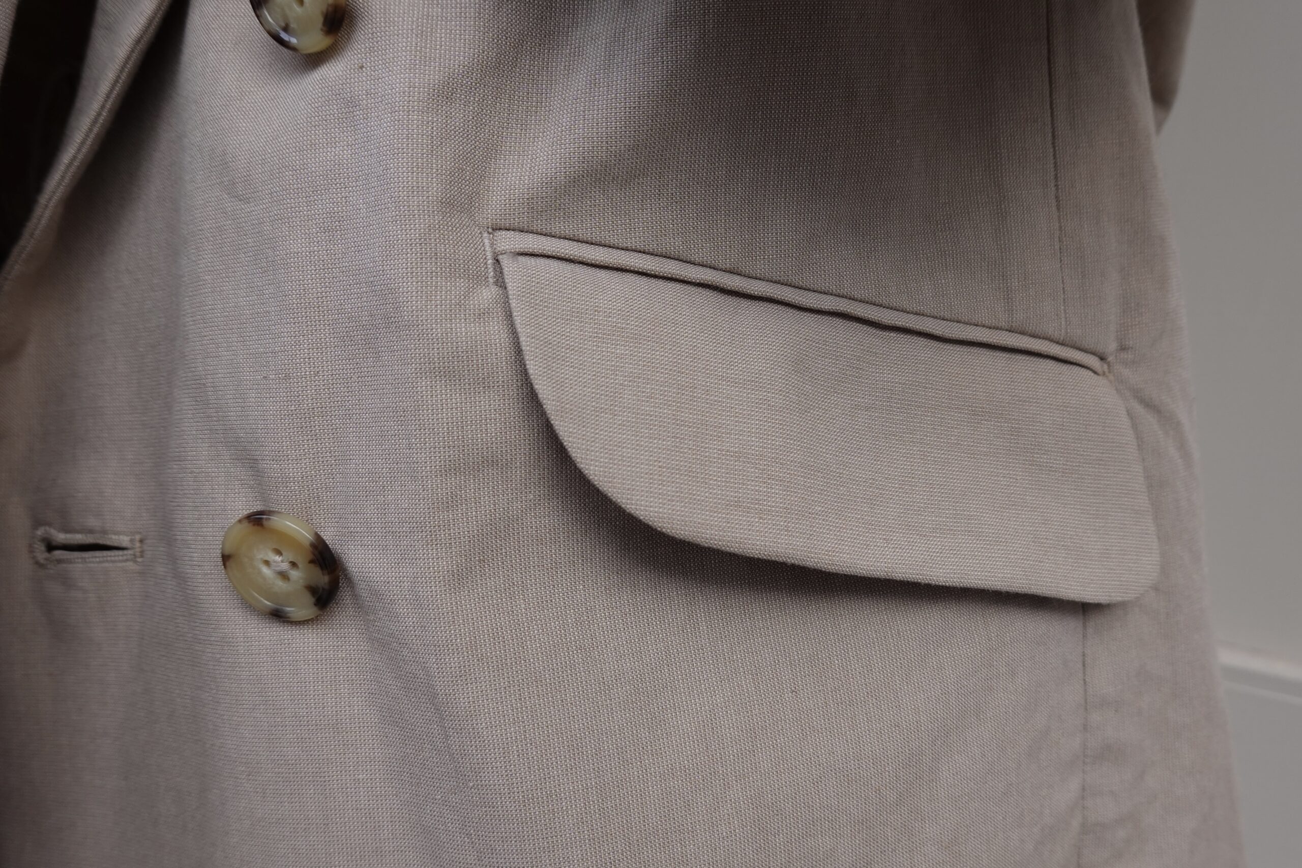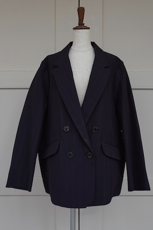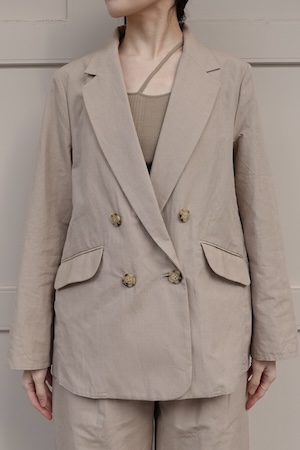 COTTON SILK RAMIE DOUBLE JACKET ¥46,200 / BEIGE,BLACK STRIPE / size1 / cotton73%,ramie22%,silk5%