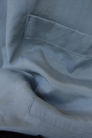 素材は綿、ラミー、シルク3種類の原料をそれぞれ異なる3色の色に染めて織り上げた生地。程よいハリがありながらも肌触りの良さを感じられる着心地は日常的にとても使いやすいです。