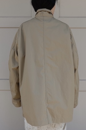 高密度に織られたコットン素材の生地は撥水性があり、天候が不安定な日にも気にせず着ていただける一枚。また、生地の張りを活かした立体的なフォルムが前後左右から見た時にとても美しい。