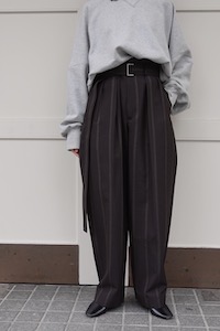 stripe: ポコポコとしたシアサッカーのマンチェスターパンツ。丸みの出るコクーンシルエット。色違いもご用意あります。¥50,600(SEEALL)