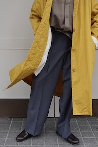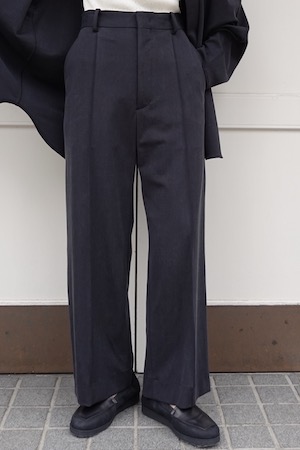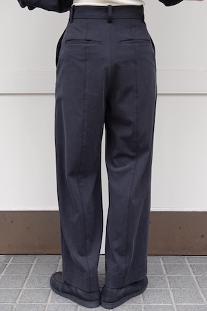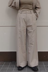 grey: 新型のトロピカルウール素材のイージーパンツ。ピンタックが入りました。お仕事でも使いやすいフォルムと素材。¥49,500(ATON)