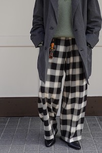 check : 和を感じさせるような清涼感のあるウールリネンのチェックパンツ。¥52,800(SEEALL)