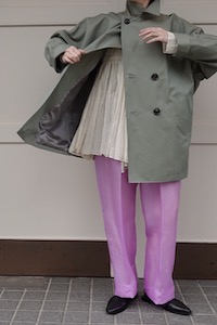 purple :今回カラーがとても綺麗だったクリスチャンワイナンツ。シルクオーガンジーの透け感とアイリスというパープルのお色が目に映り込むだけで心が躍ります。¥117,700(Christian Wijnants)