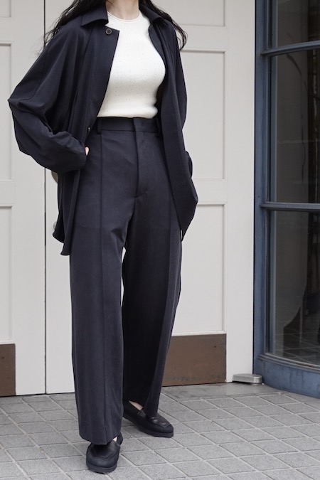 black :直線的なシルエットに、体を通すと丸みが出るAEHRRならではのシグニチャーパンツ。69,300(AEHRR)