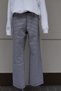 border :シンプルなボーダーのロングパンツ。ヘヴィに編まれたしっかりした素材感。サイドシームはなし¥33,000