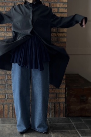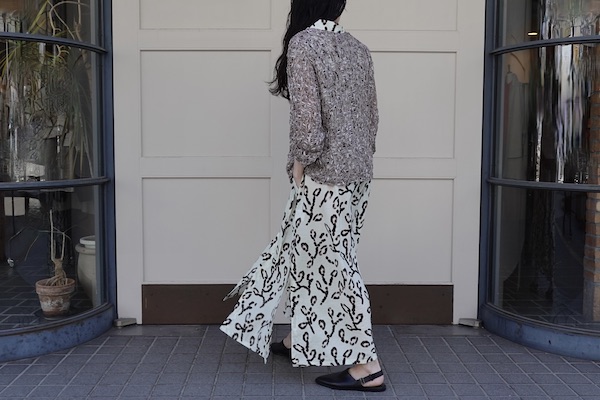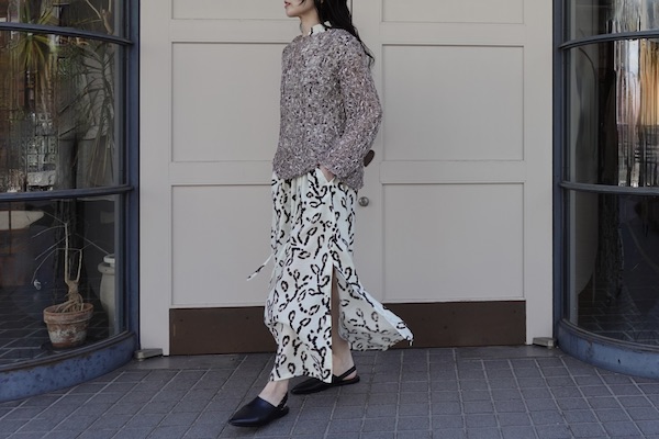 動くたびに自然に揺れるシルエットが印象的な一枚です。