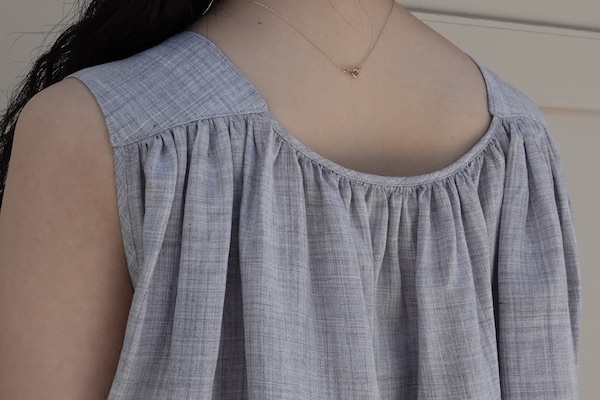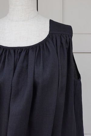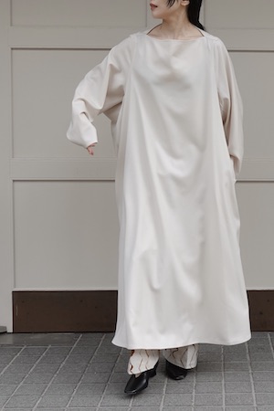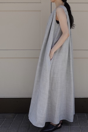 贅沢に生地を使用し、さらにタックを施すことで、バストから裾にかけて程よい膨らみとドレープ感が特徴。