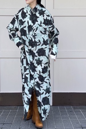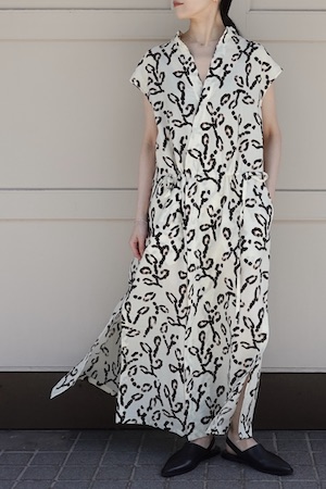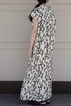 アイボリーをベースに木蓮のモチーフがプリントされた一着。