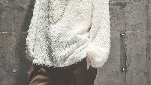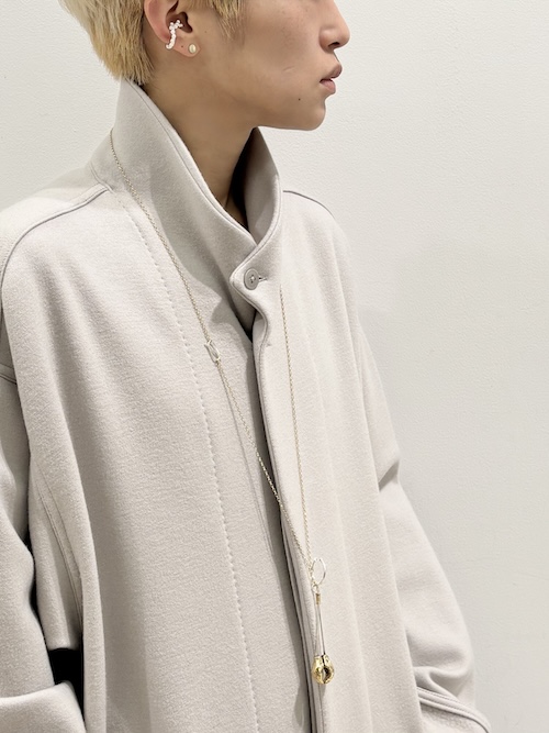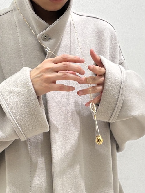 こちらでピックアップしたウールコートの滑らかさと、アーティスティックなジュエリーの素材合わせも秋冬シーズンならでは。