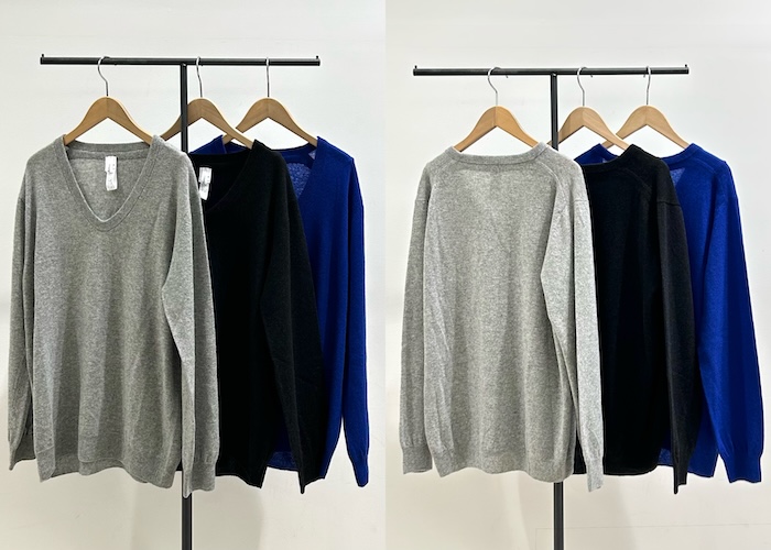 cashmere 14g knit uv-neck ¥52,800 / gray, dark charcoal, blue / Msize / cashmere100% (YAECA CONTEMPO)