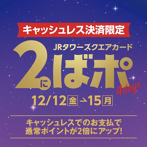 以上の入荷に加え、同日12日からは『JR tower square card point up ×2』もスタートします◎