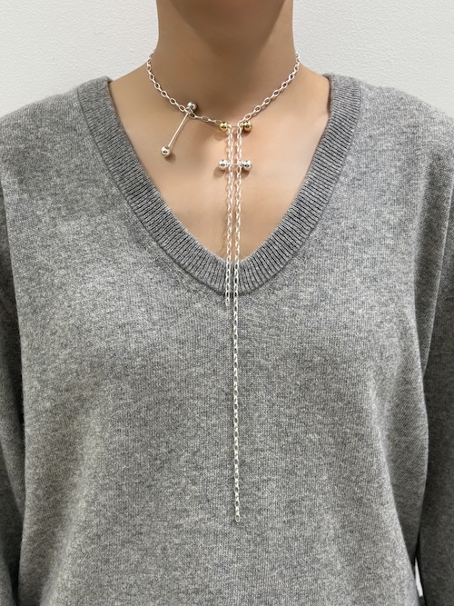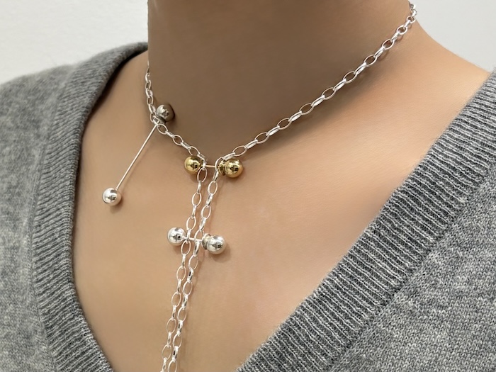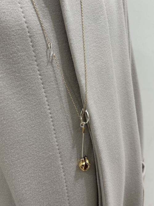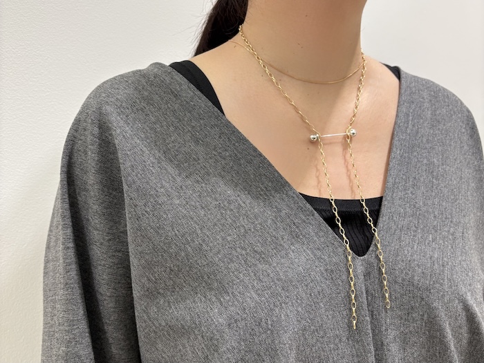 ネックレスは更に自由度が高いので、トップスがシンプルな時はアシンメトリーなバランスも楽しんで。