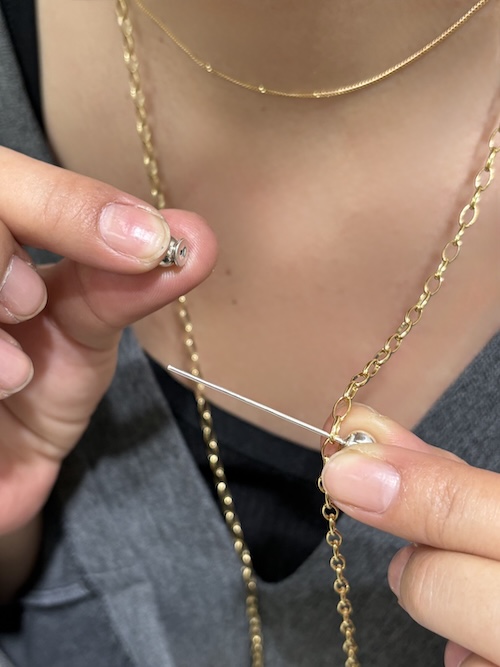 チェーンと組み合わせるとより一層顔まわりのスタイリングが華やかになります。
