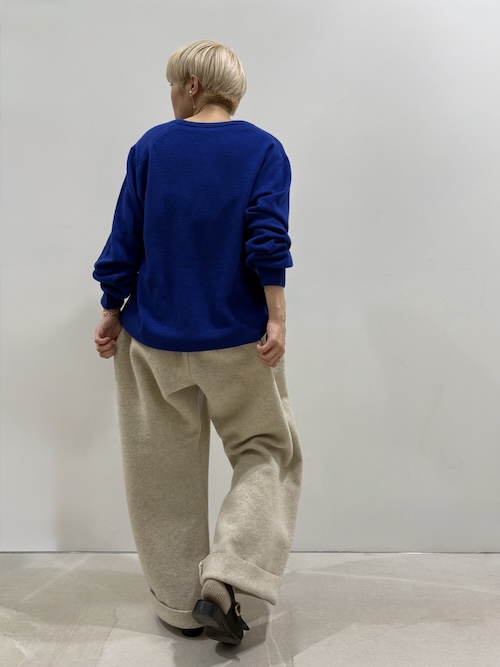 丸みのあるシルエットで、袖・パンツ部分の着丈感もたっぷりとしたユニセックスな一枚です。