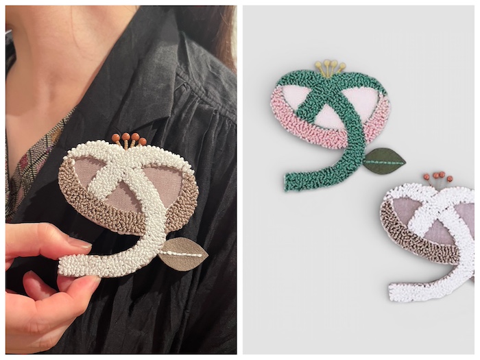 brooch -sitoar- AES7831 ¥29,700 / light pink,gray / F / linen,glass,suede