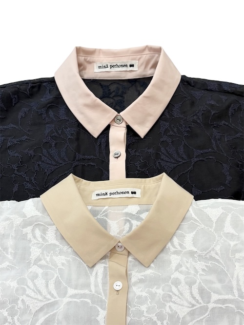 blouse -shadow- AES1451 ¥79,200 / white 38,40size,charcoal 38size / cotton100%,embroidery:cotton100%